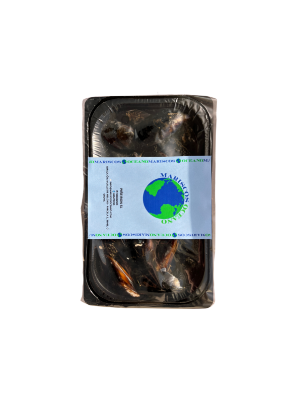 Lo recibirás vivo en mallas o bandejas de 1 kilogramo (43 a 47 unidades) envasado en atmósfera protectora y por servicio refrigerado de mensajería.